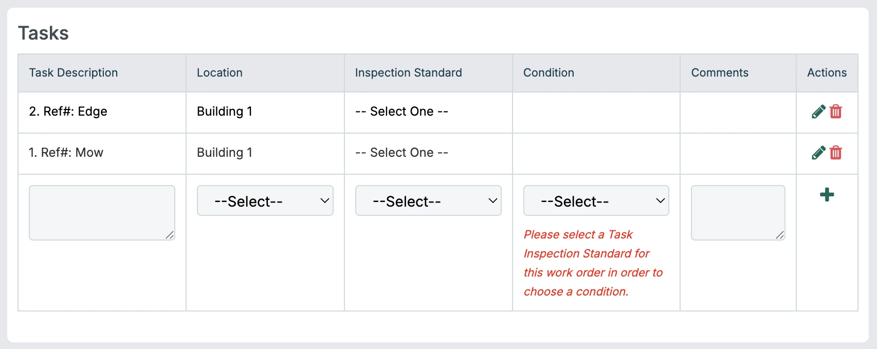 If you’re creating a rule-based or recurring work order (RWO), you may see a Tasks section below the Details section.