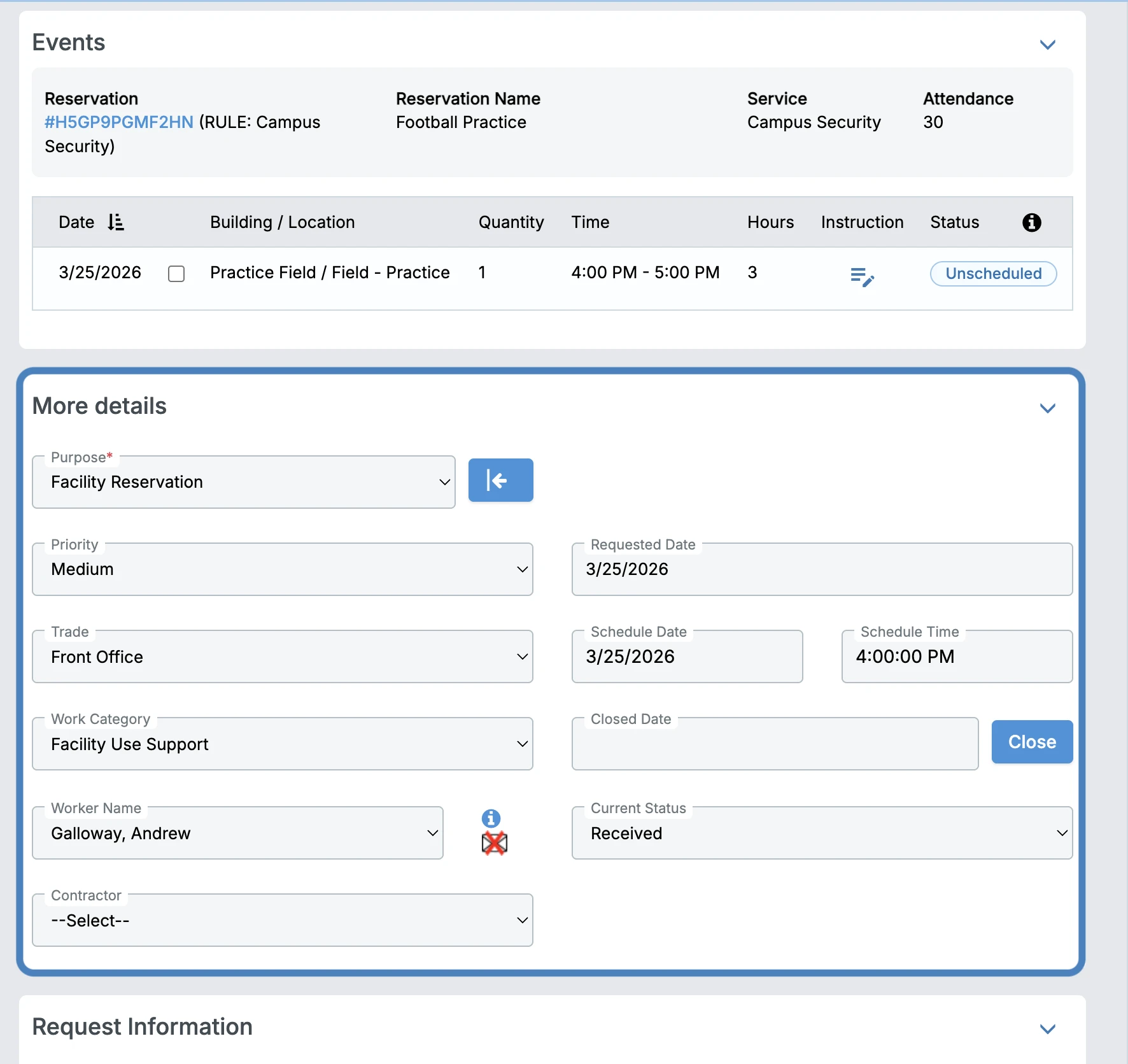 - Contractor: If a contractor is working on the work order, this is noted accordingly.
