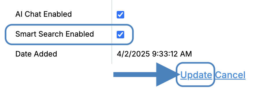 Uncheck the box next to Smart Search Enabled. Click Update to save.
