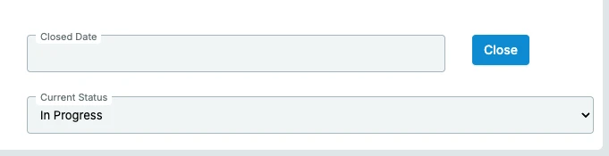 You can also close a work order directly from the work order detail page by clicking the blue Close button. The close date will automatically populate with today’s date. If you need to adjust the date, click inside the Close Date field and select the appropriate date from the calendar.
