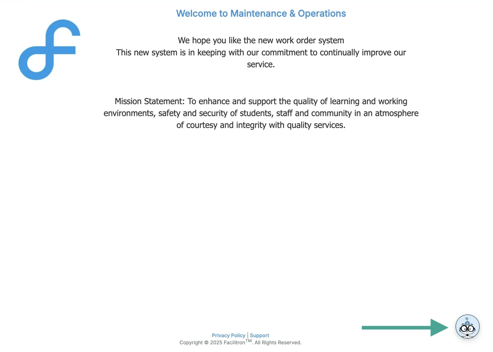 To log in to WORKS, go to maintenance.facilitron.com. Enter your school email address and the temporary password provided to you. Once you've logged in for the first time, reset the password to your own secure, unique password. For assistance with logging in, please see Logging In - Maintenance.